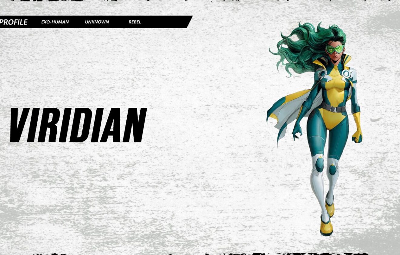 - Costume/Appearance: A teal and yellow bio-suit that regulates her internal sap-flow. She wears green-tinted goggles and a white/yellow half-cape that mimics the underside of a leaf.